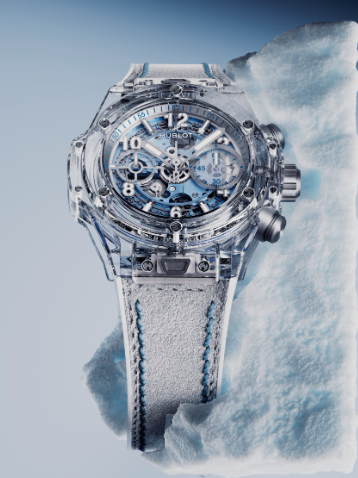Esta temporada, Hublot sube la temperatura invernal con el lanzamiento de los modelos Big Bang Unico Winter Sapphire y Big Bang Unico Winter Titanium Ceramic. Vuelve el ambiente invernal de Hublot. Desde el lanzamiento de las primeras ediciones del modelo Big Bang Unico Summer en 2017, Hublot ha marcado el rumbo para disfrutar de experiencias inolvidables por estaciones. Ahora el invierno es el que reclama su lugar en el ADN de la marca. Los nuevos modelos invernales están fabricados en zafiro o titanio y cerámica, presentan tonos blanco hielo y azul glaciar y combinan una apariencia de elegancia gélida con una dosis de adrenalina. El reloj dispone de una masa oscilante con un diseño único en forma de copo de nieve, visible a través del fondo de caja, un sutil guiño a la estación y firma del movimiento Unico de desarrollo interno de Hublot.